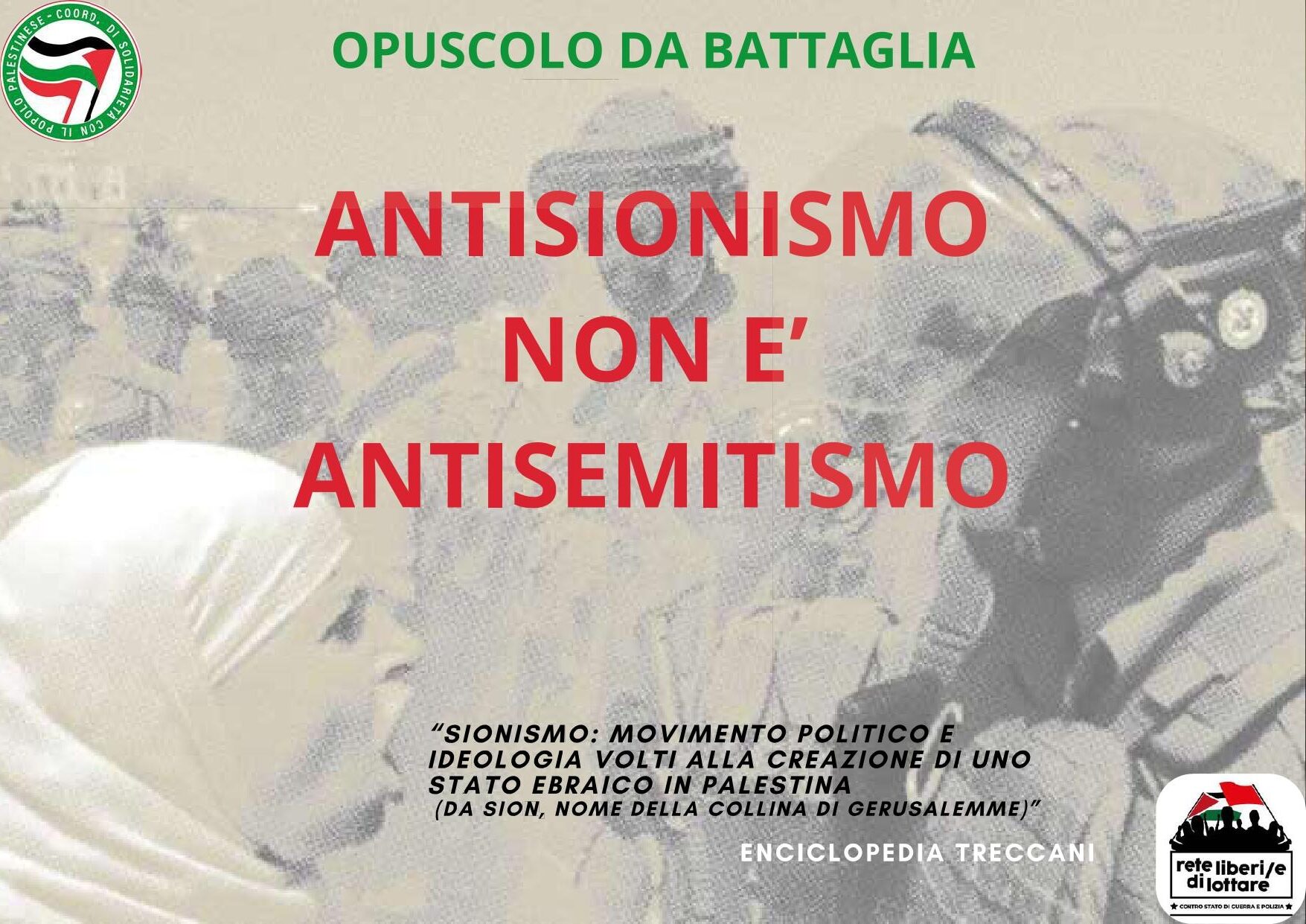 A completamento dell’ opera arriva ora il DDL “salva-sinosmo”, con l’organizzazione capillare di una sistematica attività di monitoraggio su larga scala, raccolta dati, e soprattutto con una vera e propria educazione al sionismo e all’inferiorizzazione/criminalizzazione dei palestinesi, e con essi dei popoli arabi e di tradizione islamica. Poiché è davvero difficile che alla Camera il ddl “salva-sionismo” incontri veri intoppi, il movimento di resistenza antisionista per la Palestina è chiamato da subito a rispondere con la lotta a tutto campo – nelle piazze, ma non solo nelle piazze – a questa nuova, pesante, vile provocazione di Stato. Anzitutto denunciandone la gravità, e il suo carattere radicalmente antisemita, dal momento che legittima l’oppressione e lo sterminio degli arabopalestinesi, una popolazione semitica per definizione. Qui dove viviamo, perché avremo a che fare con dei dispositivi che metteranno seriamente in discussione la nostra agibilità politica. Siamo entrati in una fase in cui, in previsione di una manifestazione, squillerà il nostro cellulare e l’altra parte del telefono ci sarà qui il Commissariato Tal dei Tali: “Lei è convocato presso il nostro commissariato. La cella la sta aspettando per 12 ore, perché lei non può andare con i suoi precedenti alla manifestazione…”. Questa è un’operazione pesantissima, che ovviamente deriva dall’esperienza fatta sulle spalle dei palestinesi in Palestina, e che oggi è diventato una realtà qui, in questo paese e lottare!